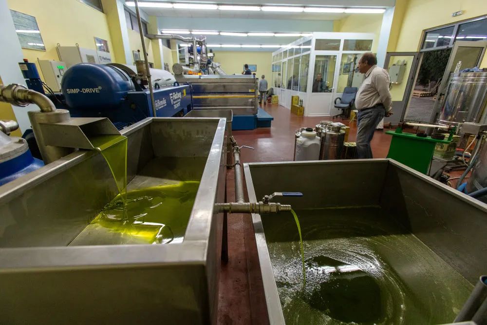 ↑希臘伯羅奔尼撒半島麥西尼亞一家橄欖油廠(chǎng)的橄欖油生產(chǎn)線(xiàn)。