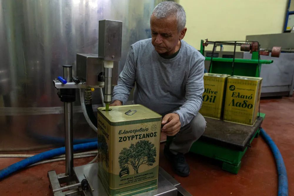 ↑希臘伯羅奔尼撒半島麥西尼亞的一家橄欖油廠(chǎng)。