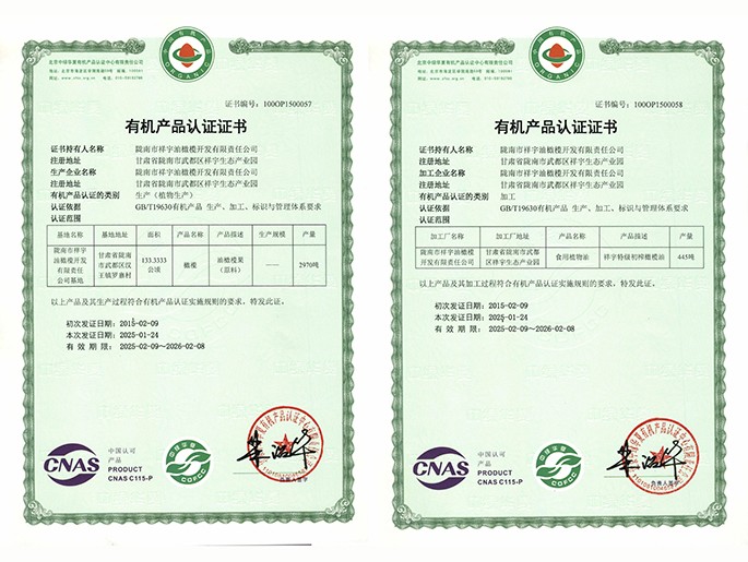 有機(jī)產(chǎn)品認(rèn)證證書