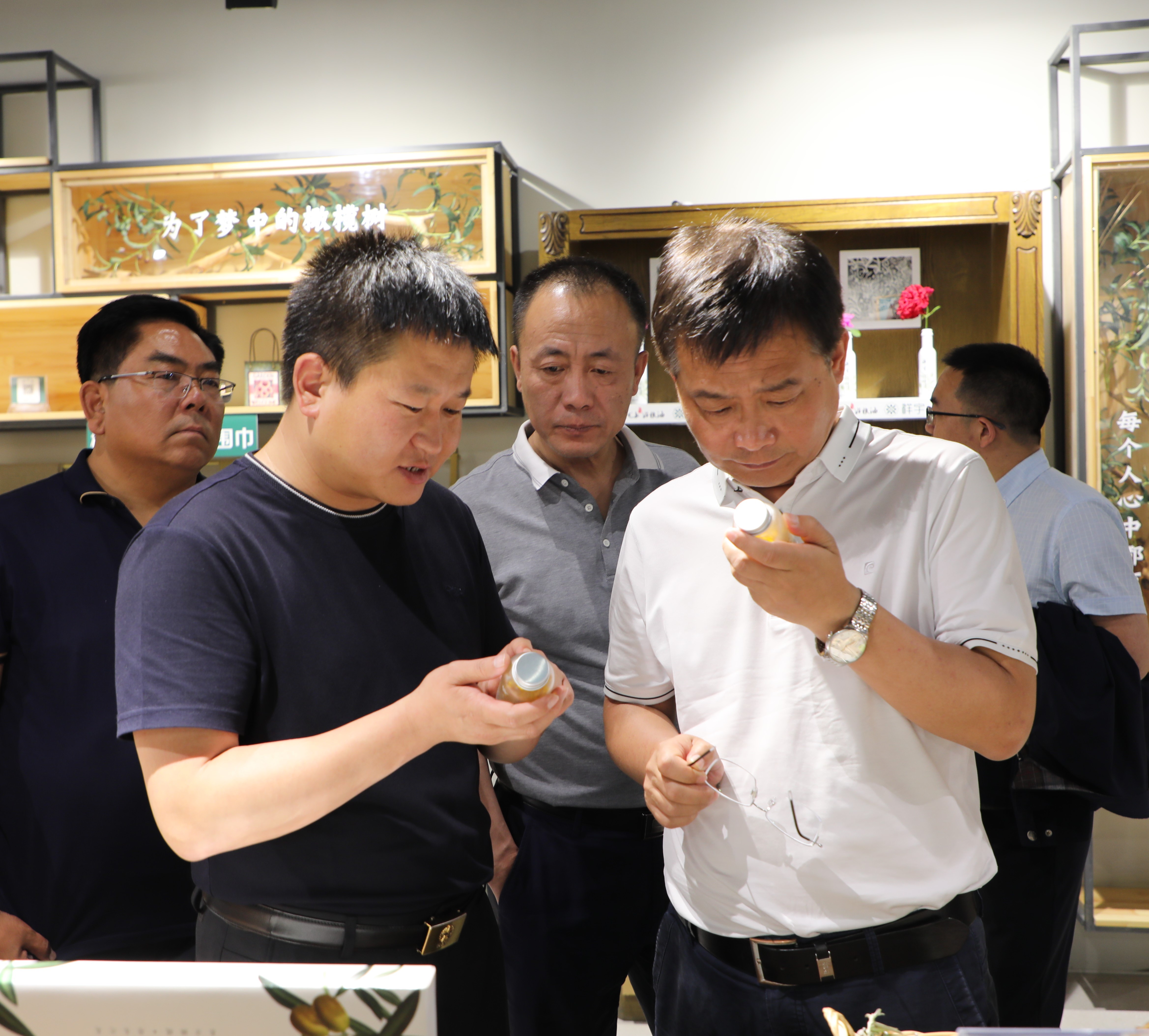 在產(chǎn)品品鑒區(qū),各位領(lǐng)導(dǎo)品鑒了祥宇特級初榨橄欖油、橄欖茶、橄欖菜、橄欖保健品等系列產(chǎn)品,
