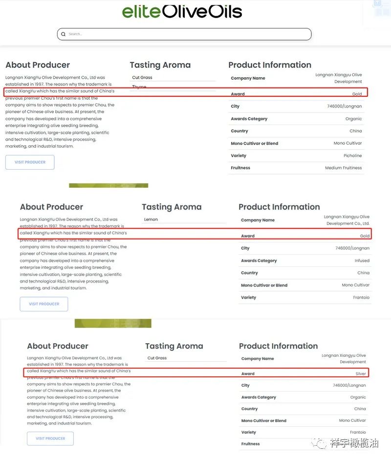 來自中國的祥宇橄欖油脫穎而出獲得兩枚金獎、一枚銀獎。