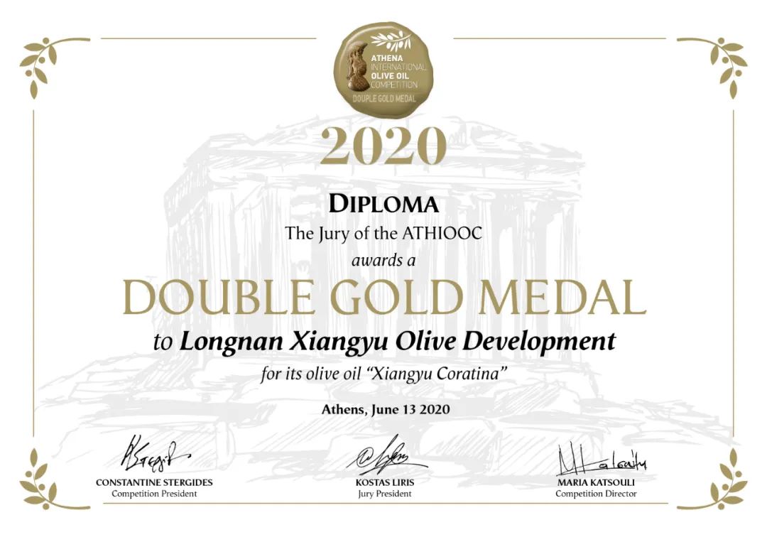2020希臘雅典娜橄欖油大賽金獎(jiǎng)