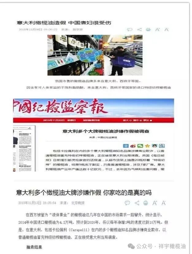 等級造假:將“精煉橄欖油”“調(diào)和橄欖油”,偽造檢測報(bào)告,冒充“特級初榨”,欺騙消費(fèi)者。