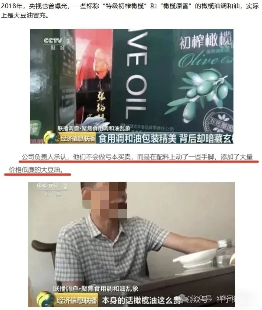 ? 年份造假:將過期、氧化的橄欖油,重新過濾、調(diào)色、加香,偽裝成新鮮油;